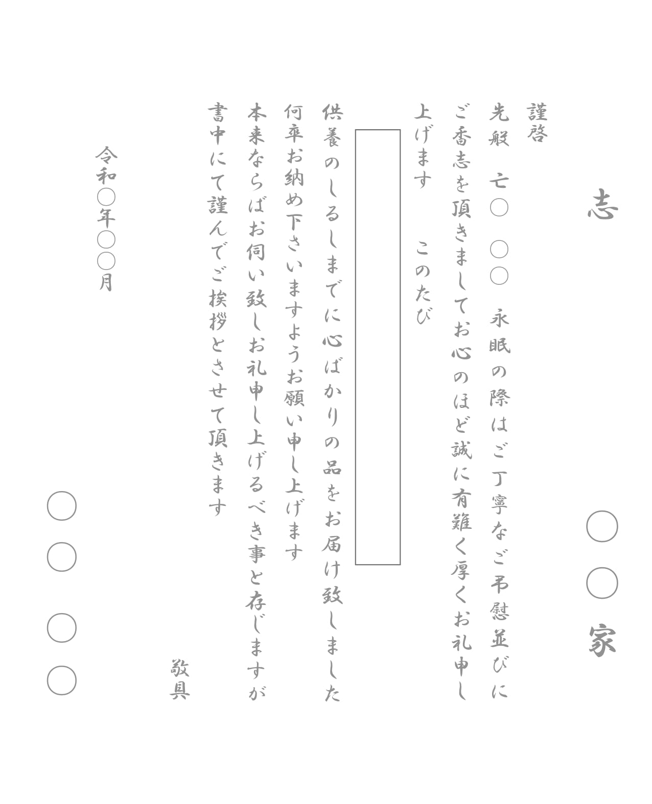 ※ご挨拶状には大切なお名前・戒名などが入りますので、弊社担当スタッフとご相談ください。