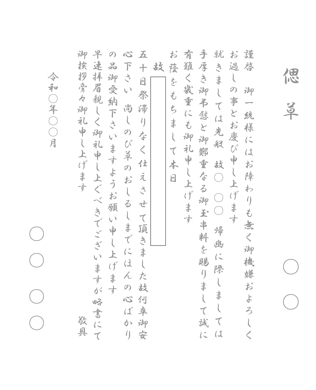 奉書・忌明前(戒名あり)